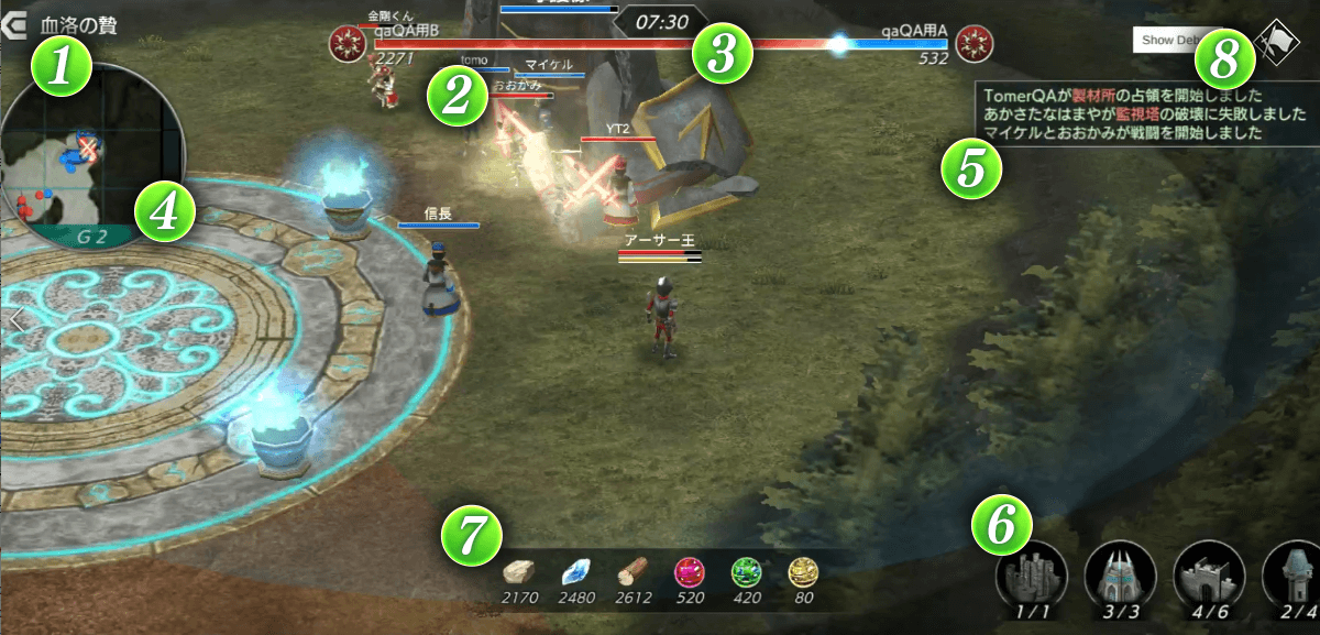 4) プレイヤーvs陣営施設 | 全滅させた側が勝利 ただし、施設のHP0時点で攻撃側勝利 | 防衛側の勝利 |