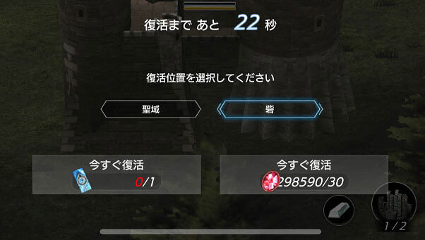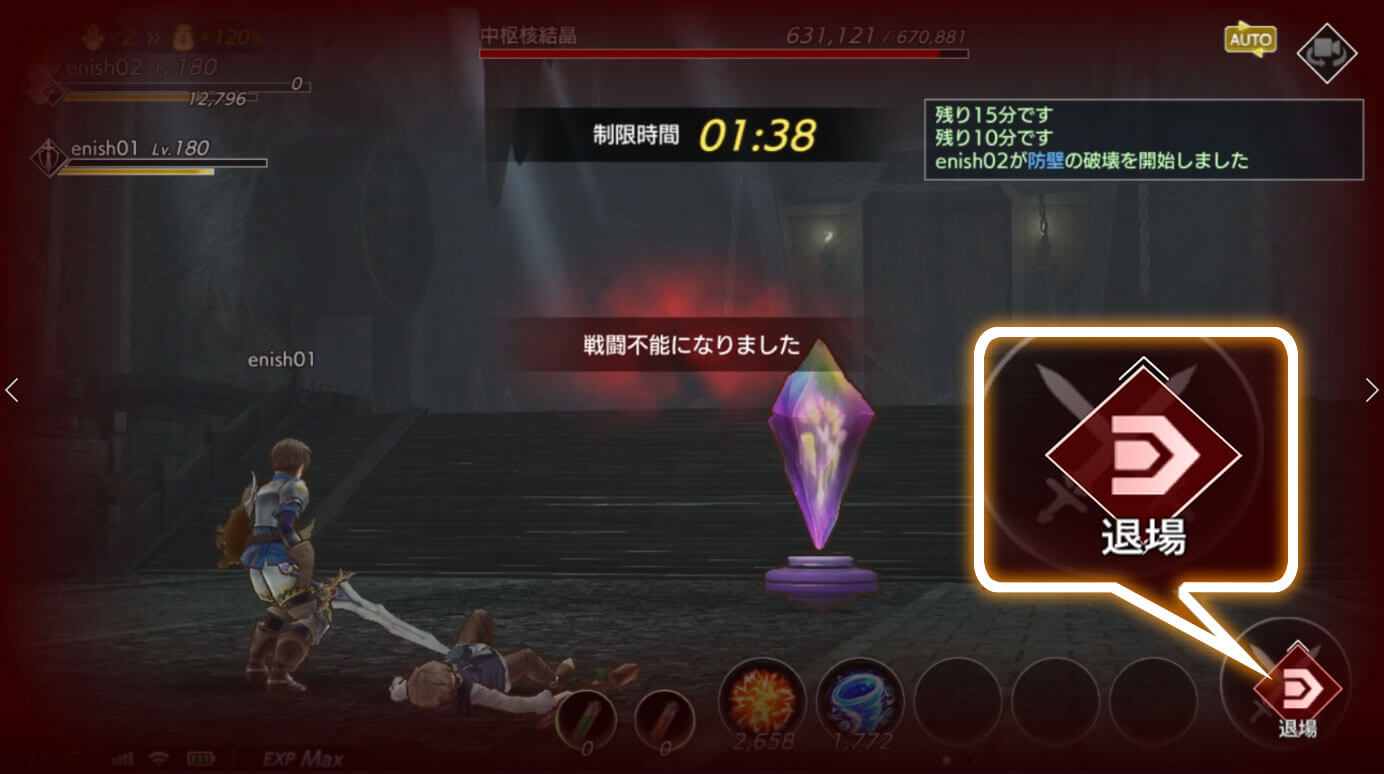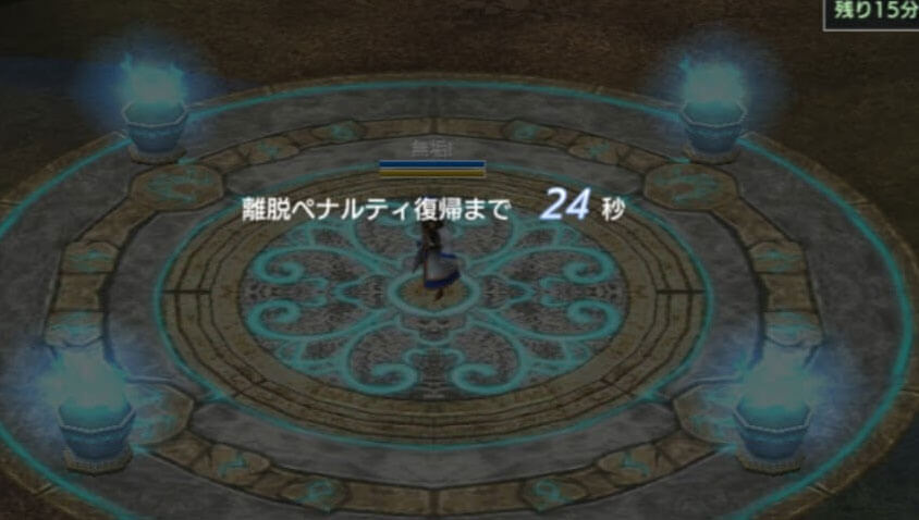 フィールドから離脱 | 聖域から再開となり、移動可能になるまで待ち時間が発生 |