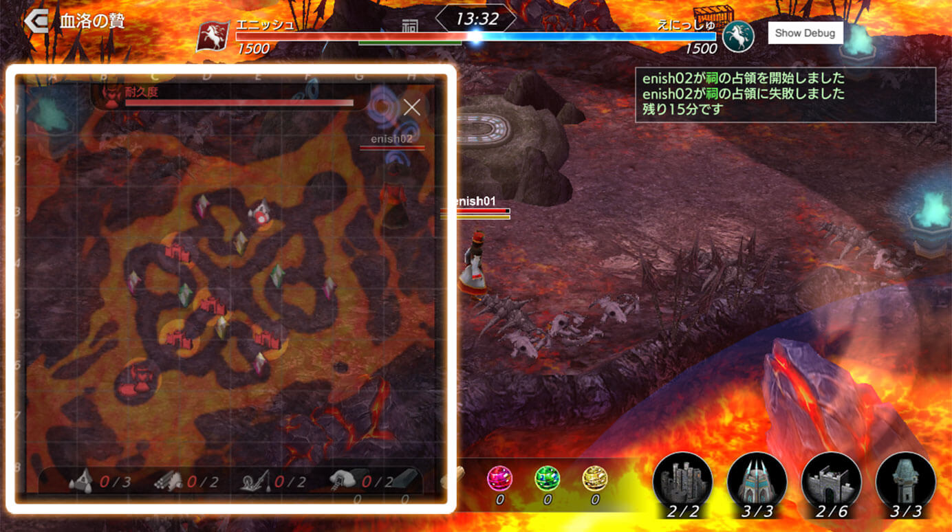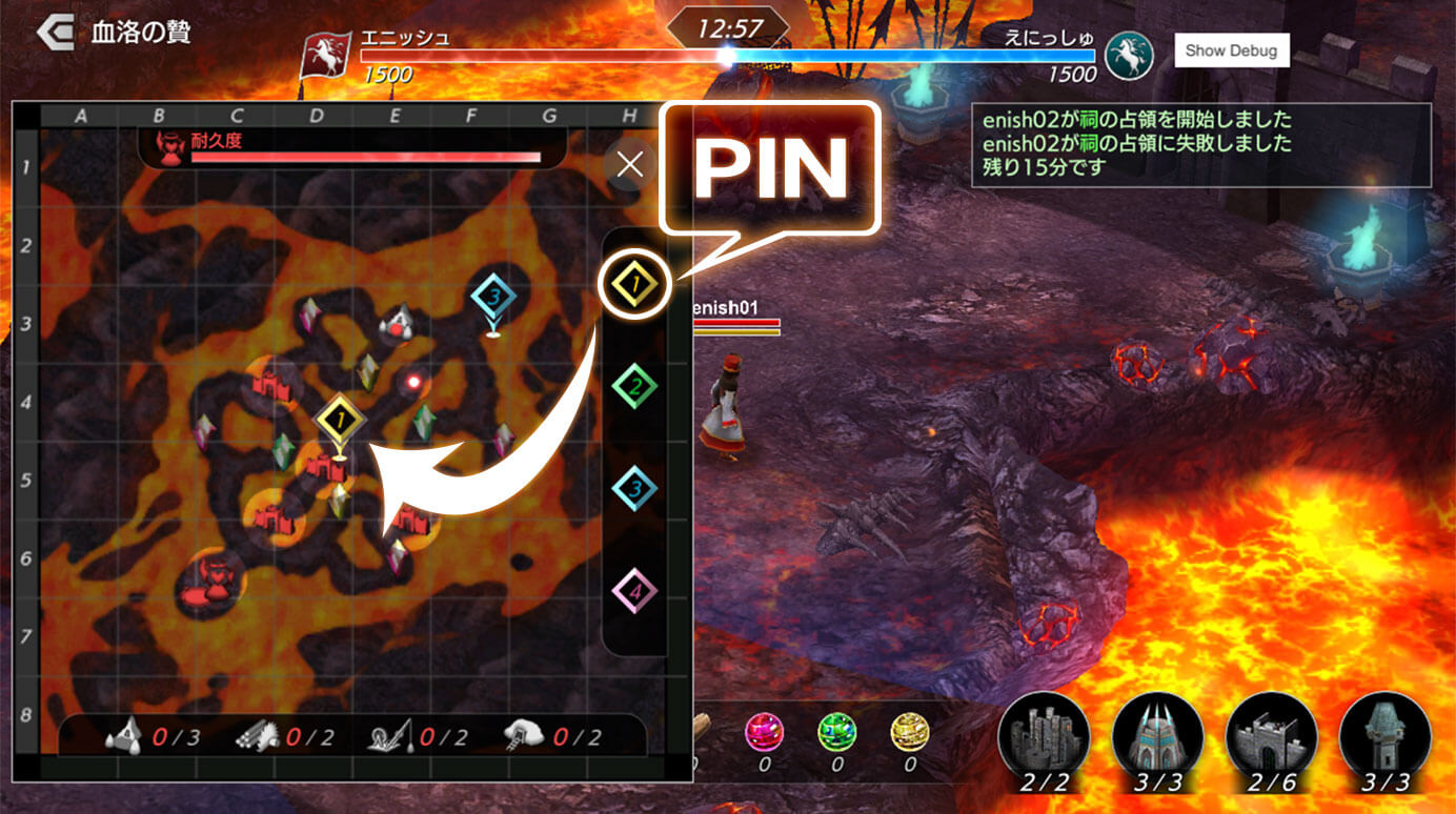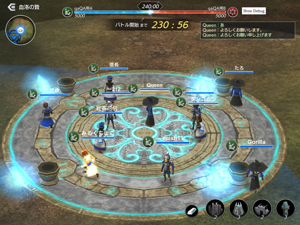 チャットタプ「血洛の贄」を指定するとバトル中の戦況ログが確認できます ※「血洛の贄」チャット上は対戦相手にもチャットが見えるためご注意ください |