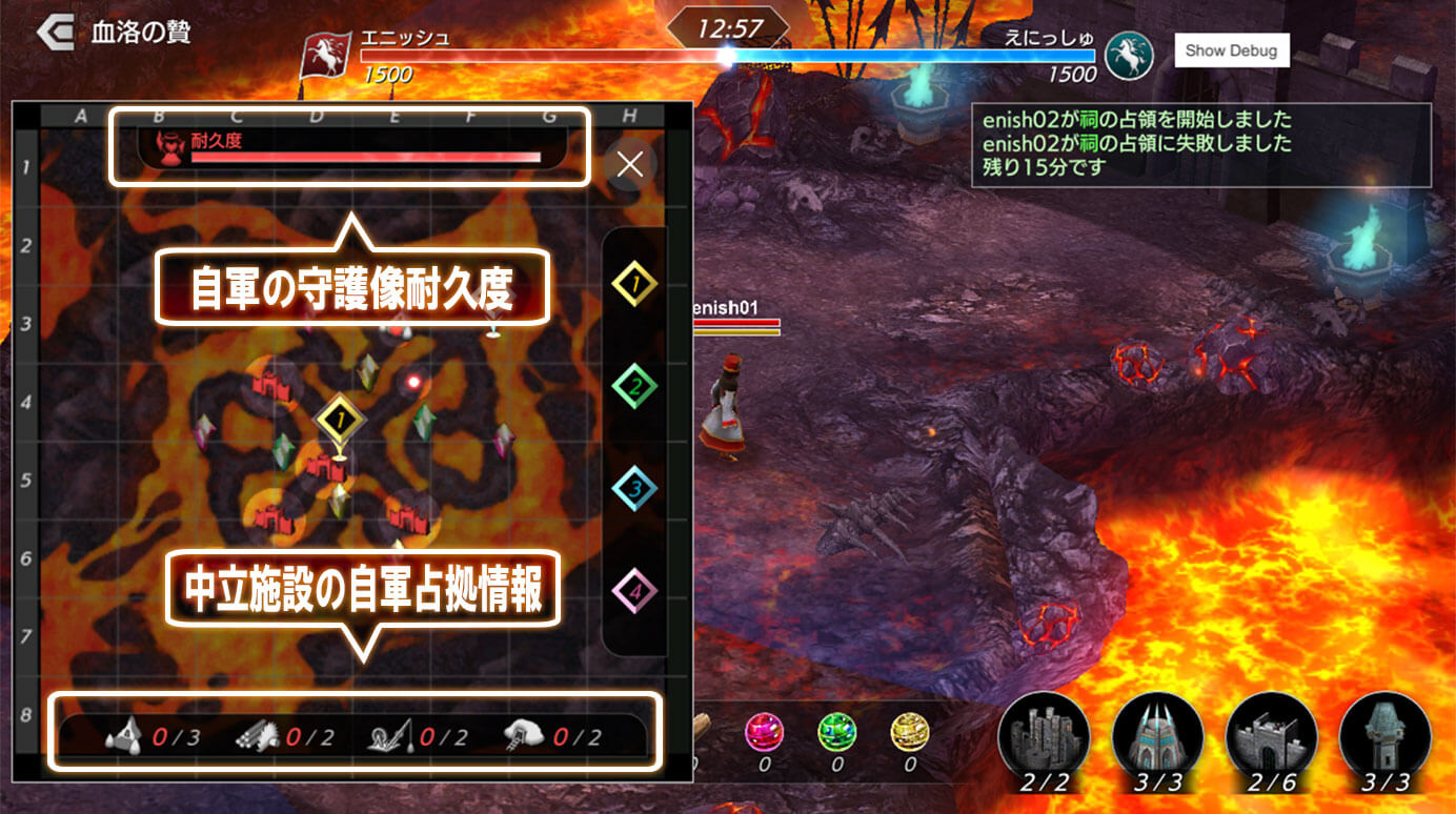 ![]() | 各陣営の本拠地、陥落すると敗北となる | 各陣営に1つ | 破壊 | x |