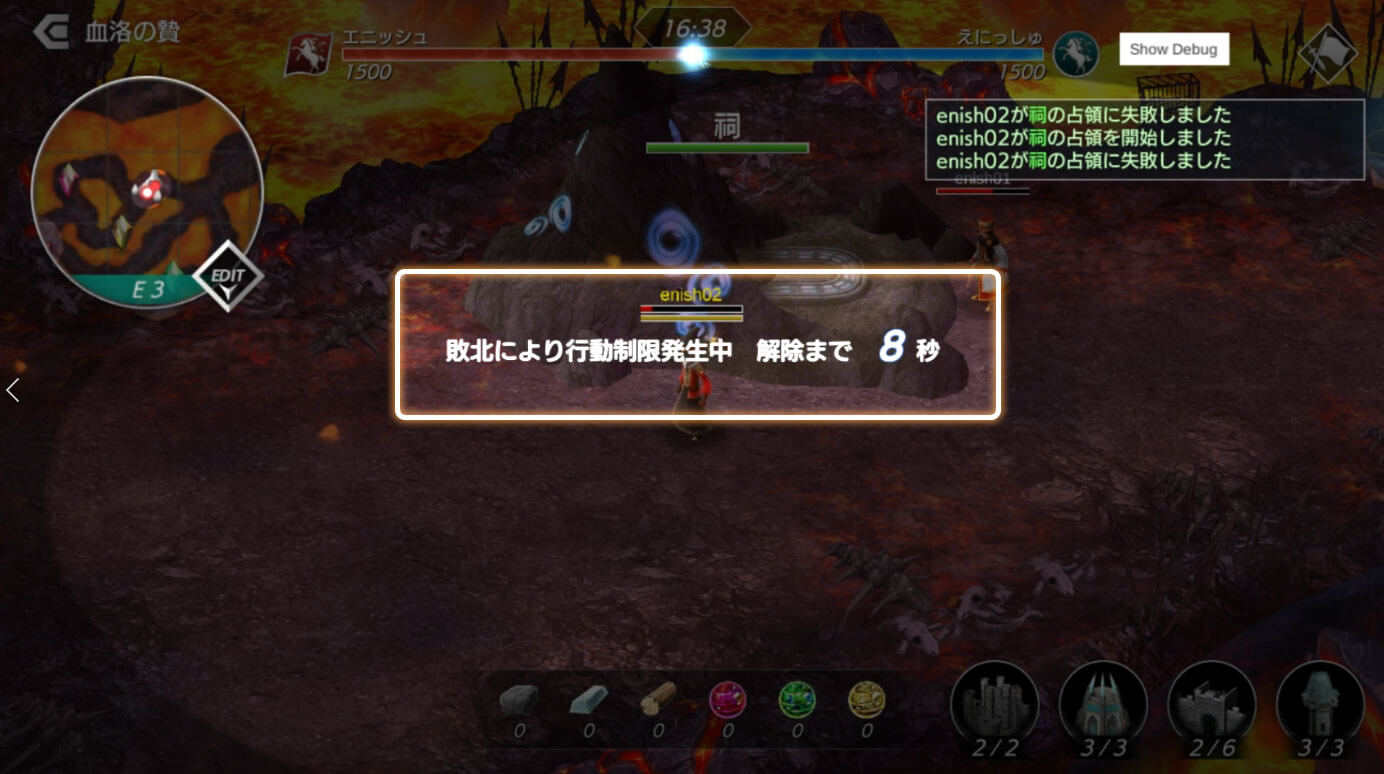 2) プレイヤーvs錬成結晶 | 全滅させた側が勝利 | プレイヤー側の敗北 |